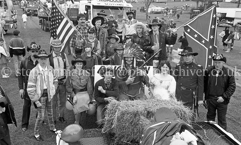 Barrhead Gala Day on Saturday 6th June1987 was one of the wettest in it's history however the show went ahead with the usual float parade led by the Neilston and District Pipe Band and majorettes from the local dancing schools. In the Cowan Park events included the iconic pub pram race, the Gala Queen crowning, bonny baby and pipe band competition. Even the bowlers managed to play a few ends in between the showers. Pictures by Stephen Mansfield