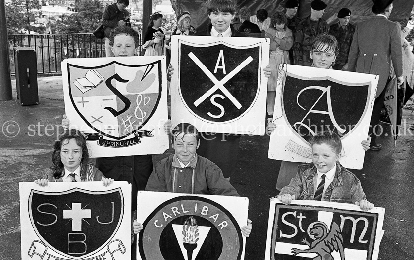 Barrhead Gala Day on Saturday 6th June1987 was one of the wettest in it's history however the show went ahead with the usual float parade led by the Neilston and District Pipe Band and majorettes from the local dancing schools. In the Cowan Park events included the iconic pub pram race, the Gala Queen crowning, bonny baby and pipe band competition. Even the bowlers managed to play a few ends in between the showers. Pictures by Stephen Mansfield