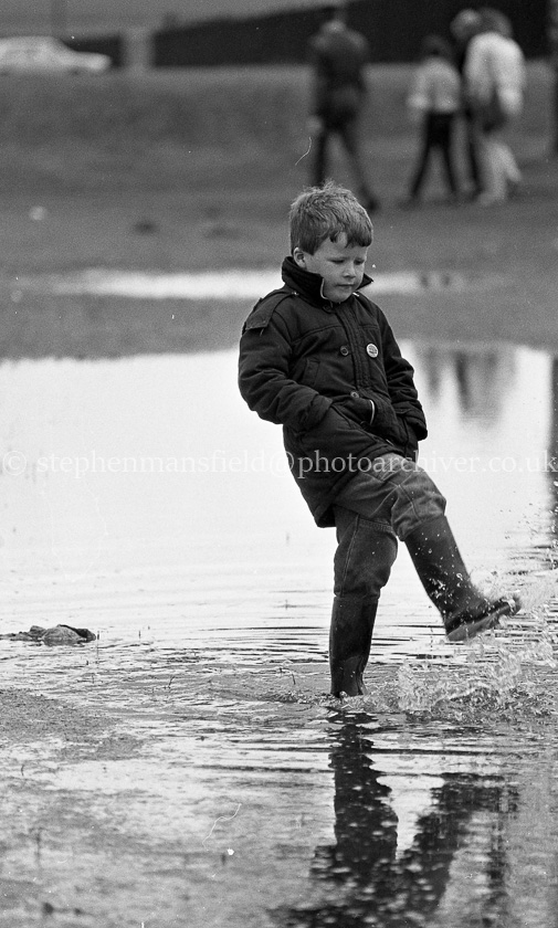 Barrhead Gala Day on Saturday 6th June1987 was one of the wettest in it's history however the show went ahead with the usual float parade led by the Neilston and District Pipe Band and majorettes from the local dancing schools. In the Cowan Park events included the iconic pub pram race, the Gala Queen crowning, bonny baby and pipe band competition. Even the bowlers managed to play a few ends in between the showers. Pictures by Stephen Mansfield
