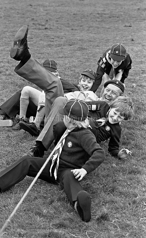 Cubs and Scouts gathered at their Peesweep Camp on the Gleniffer Braes above Paisley to meet the recently appointed Chief Scout, Major-General Michael J.H. Walsh who literaly made a flying visit to the facility. Picture by Stephen Mansfield.