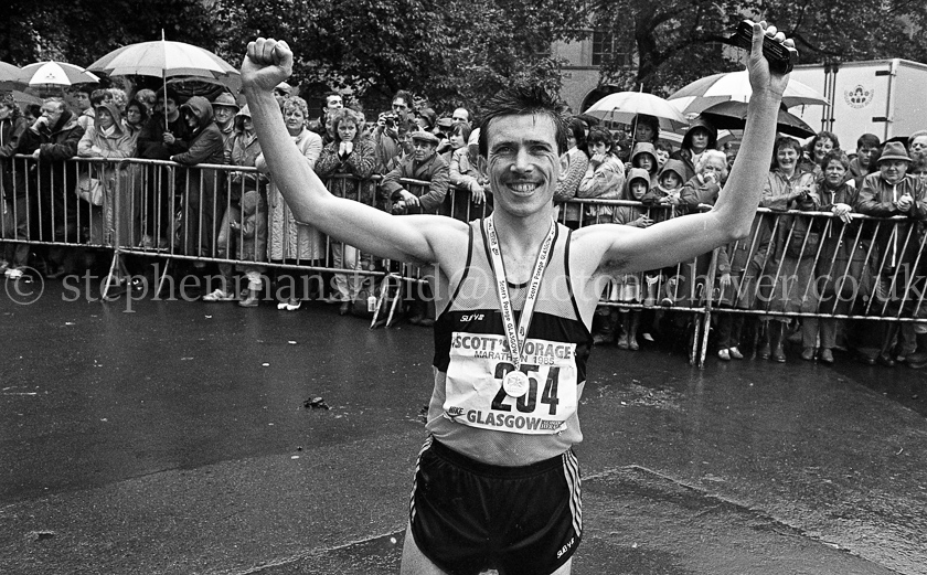 A selection of pictures from the 1985 Glasgow Marathon sponsored by Scott's Porage Oats. The photographs were taken around the halfway point as the runners crossed King George V Bridge in the city centre and at the finishing line in Glasgow Green. Pictures by Stephen Mansfield.
