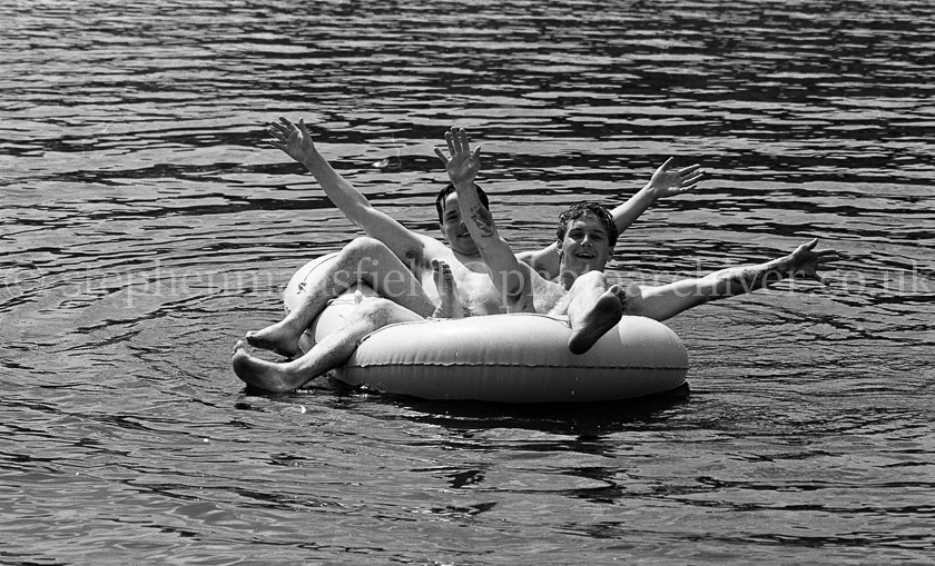 In June 1986 two rival American Football teams, the Barrhead Redhawks and the Johnstone Crusaders challenged each other to a race to the top of Barrhead's historic Craige each carrying a hospital bed and to raise funds for the Accord Hospice in Paisley. Picture by Stephen Mansfield