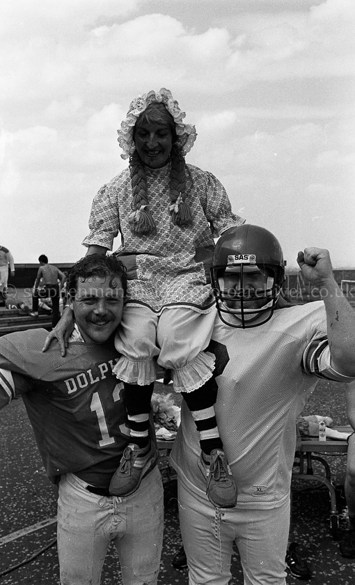 In June 1986 two rival American Football teams, the Barrhead Redhawks and the Johnstone Crusaders challenged each other to a race to the top of Barrhead's historic Craige each carrying a hospital bed and to raise funds for the Accord Hospice in Paisley. Picture by Stephen Mansfield