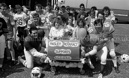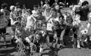 In June 1986 two rival American Football teams, the Barrhead Redhawks and the Johnstone Crusaders challenged each other to a race to the top of Barrhead's historic Craige each carrying a hospital bed and to raise funds for the Accord Hospice. The specialist unit in Paisley offers palliative and end of iife care and is hugely dependant on charitable donations and income from their retail outlets. Picture by Stephen Mansfield.
