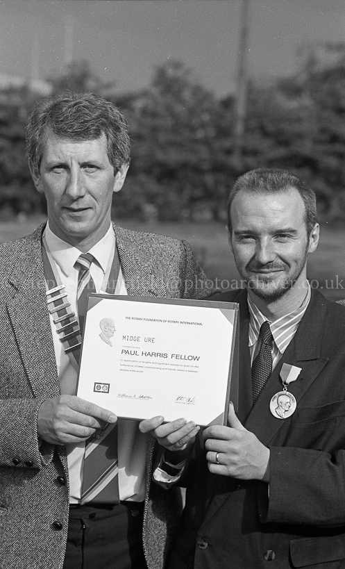 Barrhead Rotary presents Midge Ure with Paul Harris Fellowship.