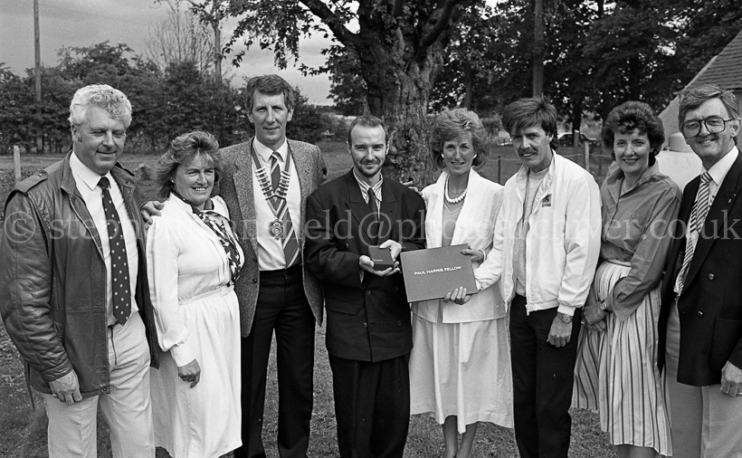 The Scottish rock star Midge Ure was presented with a Paul Harris Fellowship for his Humanitarian work by the Barrhead Rotary Club at the Scout Association Outdoor Activity Centre in Uddingston on the 17th August 1986. Picture by Stephen Mansfield.