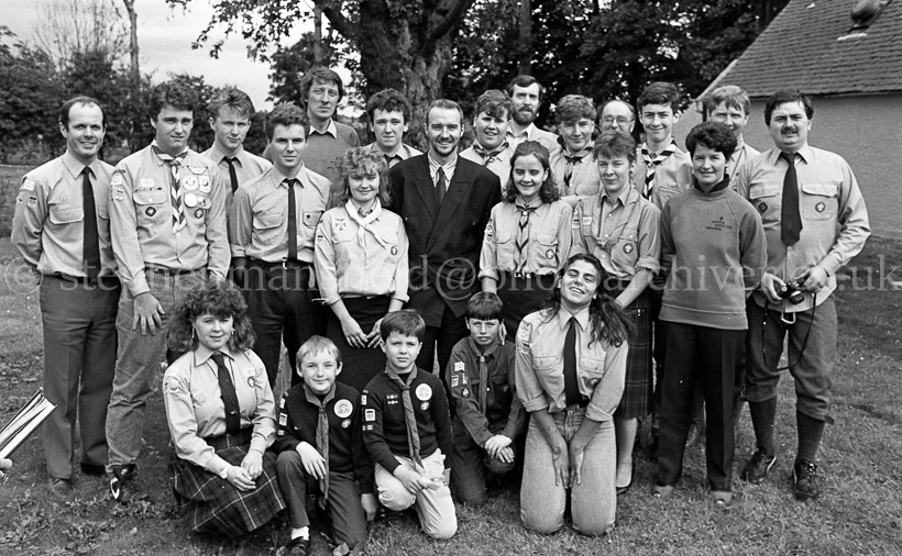 The Scottish rock star Midge Ure was presented with a Paul Harris Fellowship for his Humanitarian work by the Barrhead Rotary Club at the Scout Association Outdoor Activity Centre in Uddingston on the 17th August 1986. Picture by Stephen Mansfield.