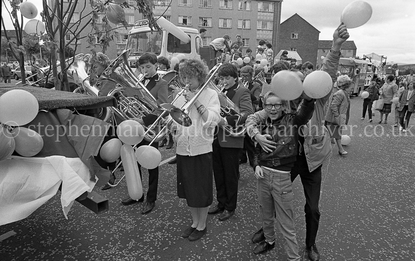 Another successful Gala Day was held in Barrhead's Cowan Park on Saturday 7th June 1986 which attracted large crowds despite the overcast day. The Float parade along Cross Arthurlie Street and Main Street started off the day and in the park the pub pram race, bonnie baby competition, Craigie Race and various sports activities entertained the patrons. The day was rounded off with the pipe band parade and presentation of trophies. Pictures by Stephen Mansfield.