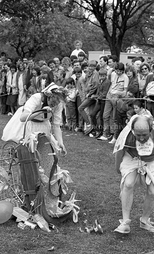 Another successful Gala Day was held in Barrhead's Cowan Park on Saturday 7th June 1986 which attracted large crowds despite the overcast day. The Float parade along Cross Arthurlie Street and Main Street started off the day and in the park the pub pram race, bonnie baby competition, Craigie Race and various sports activities entertained the patrons. The day was rounded off with the pipe band parade and presentation of trophies. Pictures by Stephen Mansfield.