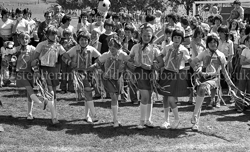 Another sunny day on Saturday the 3rd of June 1978 for that year's Barrhead Gala Day. A great turn out of floats, majorettes and local bands led the parade through the main streets of the East Renfrewshire town and joining the crowds gathered in the town's Cowan Park to continue the many activities. Pictures by Stephen Mansfield.