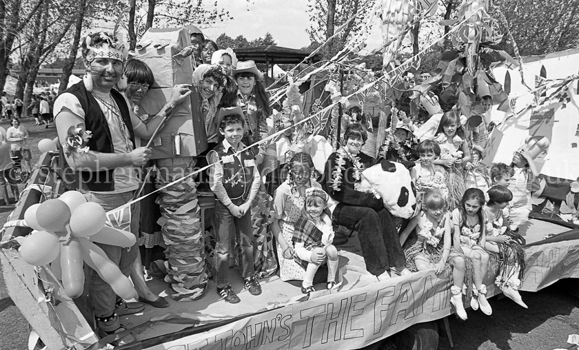 Barrhead Gala Day in 1984 started off a bit wet but soon the sun shone and all the annual events including the Craigie Race, Bonny Baby Competition and Pipe Band Competition went ahead as usual. The event took place in the town's Cowan Park after the Float Procession and parade made their way from the station and through the main sreets of the town. As always the events were watched over by that years Gala Quen and her maids. Pictures by Stephen Mansfield.