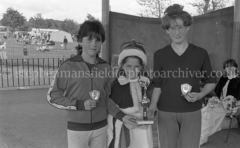 Barrhead Gala Day in 1984 started off a bit wet but soon the sun shone and all the annual events including the Craigie Race, Bonny Baby Competition and Pipe Band Competition went ahead as usual. The event took place in the town's Cowan Park after the Float Procession and parade made their way from the station and through the main sreets of the town. As always the events were watched over by that years Gala Quen and her maids. Pictures by Stephen Mansfield.