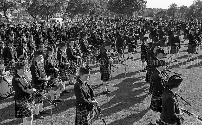 Barrhead Gala Day in 1984 started off a bit wet but soon the sun shone and all the annual events including the Craigie Race, Bonny Baby Competition and Pipe Band Competition went ahead as usual. The event took place in the town's Cowan Park after the Float Procession and parade made their way from the station and through the main sreets of the town. As always the events were watched over by that years Gala Quen and her maids. Pictures by Stephen Mansfield.