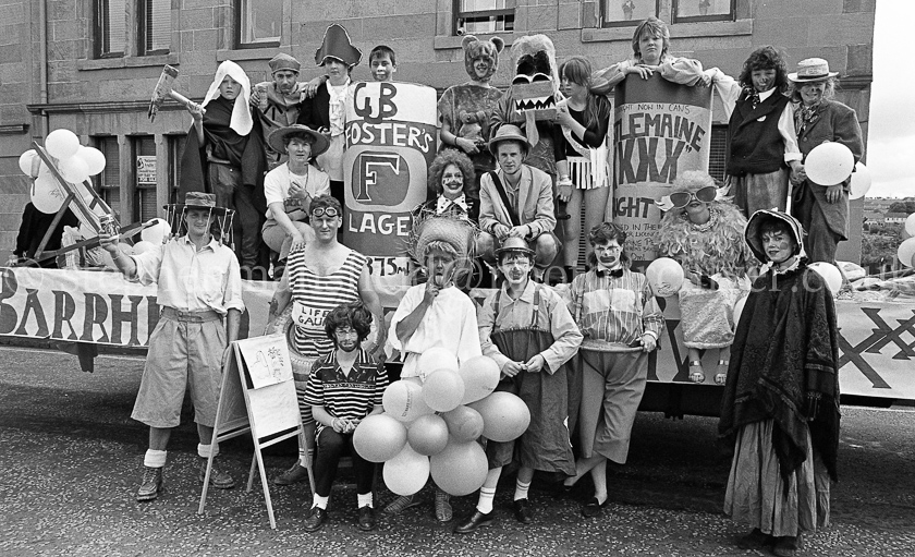 Barrhead Gala Day on Saturday 4th June 1988 was one of the most successful helped mainly by the great weather and the combination of the World Pipe Band Championships.It began as usual with the float procession up Cross Arthurlie Street and along the Main Street led by the Neilston & District Pipe Band and to Cowan Park. Pictures by Stephen Mansfield.