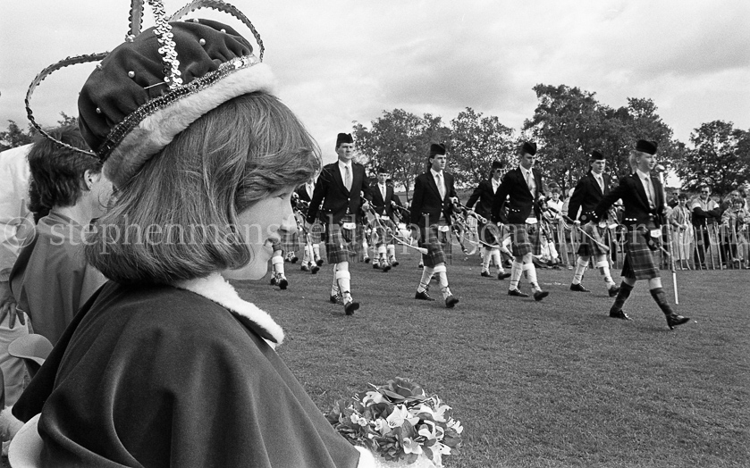 Barrhead Gala Day on Saturday 4th June 1988 was one of the most successful helped mainly by the great weather and the combination of the World Pipe Band Championships.It began as usual with the float procession up Cross Arthurlie Street and along the Main Street led by the Neilston & District Pipe Band and to Cowan Park. Pictures by Stephen Mansfield.