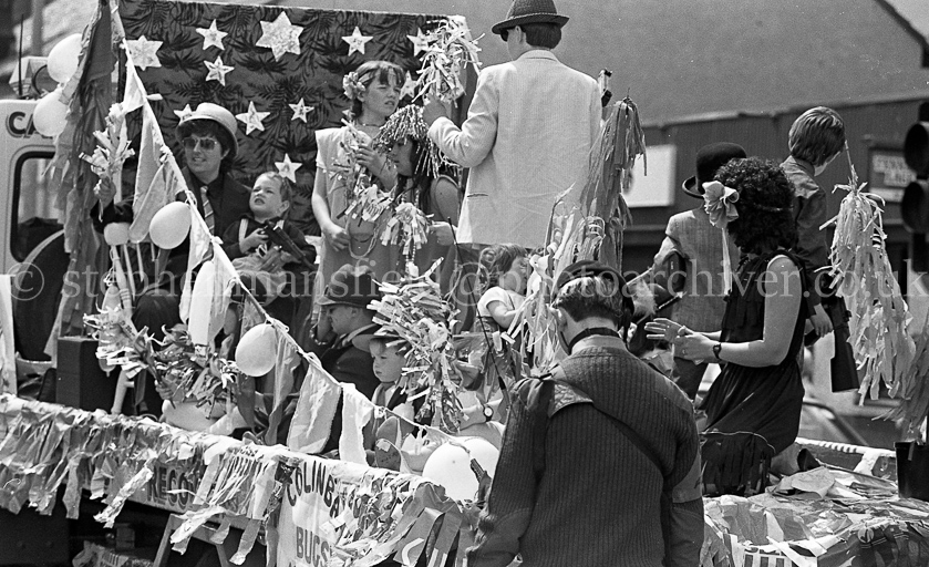 Barrhead Gala Day on Saturday 4th June 1988 was one of the most successful helped mainly by the great weather and the combination of the World Pipe Band Championships.It began as usual with the float procession up Cross Arthurlie Street and along the Main Street led by the Neilston & District Pipe Band and to Cowan Park. Pictures by Stephen Mansfield.