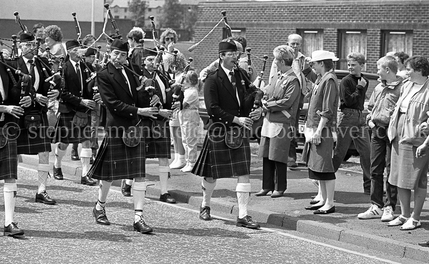 Barrhead Gala Day on Saturday 4th June 1988 was one of the most successful helped mainly by the great weather and the combination of the World Pipe Band Championships.It began as usual with the float procession up Cross Arthurlie Street and along the Main Street led by the Neilston & District Pipe Band and to Cowan Park. Pictures by Stephen Mansfield.