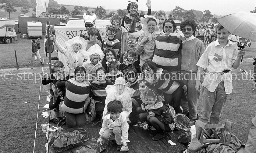 Barrhead Gala Day on Saturday 6th June1987 was one of the wettest in it's history however the show went ahead with the usual float parade led by the Neilston and District Pipe Band and majorettes from the local dancing schools. In the Cowan Park events included the iconic pub pram race, the Gala Queen crowning, bonny baby and pipe band competition. Even the bowlers managed to play a few ends in between the showers. Pictures by Stephen Mansfield