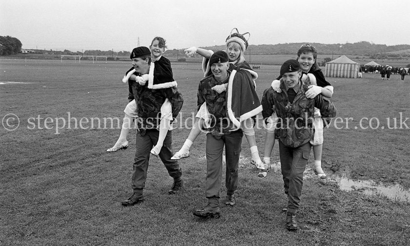 Barrhead Gala Day on Saturday 6th June1987 was one of the wettest in it's history however the show went ahead with the usual float parade led by the Neilston and District Pipe Band and majorettes from the local dancing schools. In the Cowan Park events included the iconic pub pram race, the Gala Queen crowning, bonny baby and pipe band competition. Even the bowlers managed to play a few ends in between the showers. Pictures by Stephen Mansfield