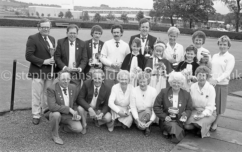 Barrhead Gala Day on Saturday 6th June1987 was one of the wettest in it's history however the show went ahead with the usual float parade led by the Neilston and District Pipe Band and majorettes from the local dancing schools. In the Cowan Park events included the iconic pub pram race, the Gala Queen crowning, bonny baby and pipe band competition. Even the bowlers managed to play a few ends in between the showers. Pictures by Stephen Mansfield
