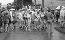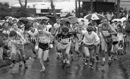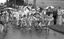 Barrhead Gala Day on Saturday 6th June1987 was one of the wettest in it's history however the show went ahead with the usual float parade led by the Neilston and District Pipe Band and majorettes from the local dancing schools. In the Cowan Park events included the iconic pub pram race, the Gala Queen crowning, bonny baby and pipe band competition. Even the bowlers managed to play a few ends in between the showers. Pictures by Stephen Mansfield