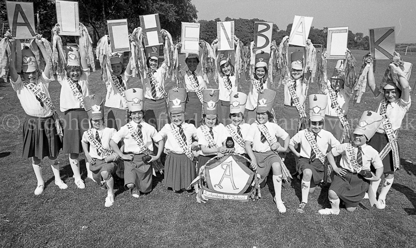 Barrhead in June 1977 was a busy month for the town with a full calendar of Gala events. Saturday the 4th was the Gala Day proper in the Cowan Park which was preceded by the now familiar parade of floats led by the Neilston Pipe Band and local majorettes. Picture by Stephen Mansfield.