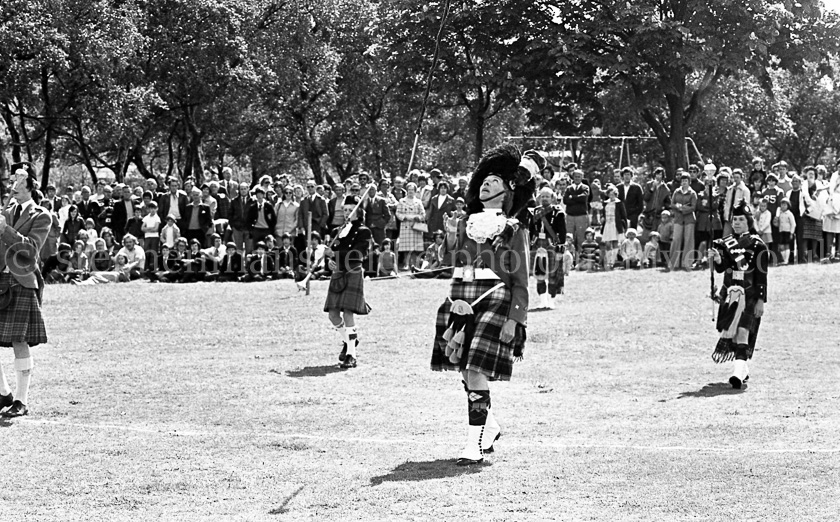 Barrhead in June 1977 was a busy month for the town with a full calendar of Gala events. Saturday the 4th was the Gala Day proper in the Cowan Park which was preceded by the now familiar parade of floats led by the Neilston Pipe Band and local majorettes. Picture by Stephen Mansfield.