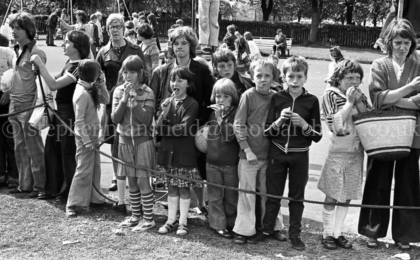 Barrhead in June 1977 was a busy month for the town with a full calendar of Gala events. Saturday the 4th was the Gala Day proper in the Cowan Park which was preceded by the now familiar parade of floats led by the Neilston Pipe Band and local majorettes. Picture by Stephen Mansfield.