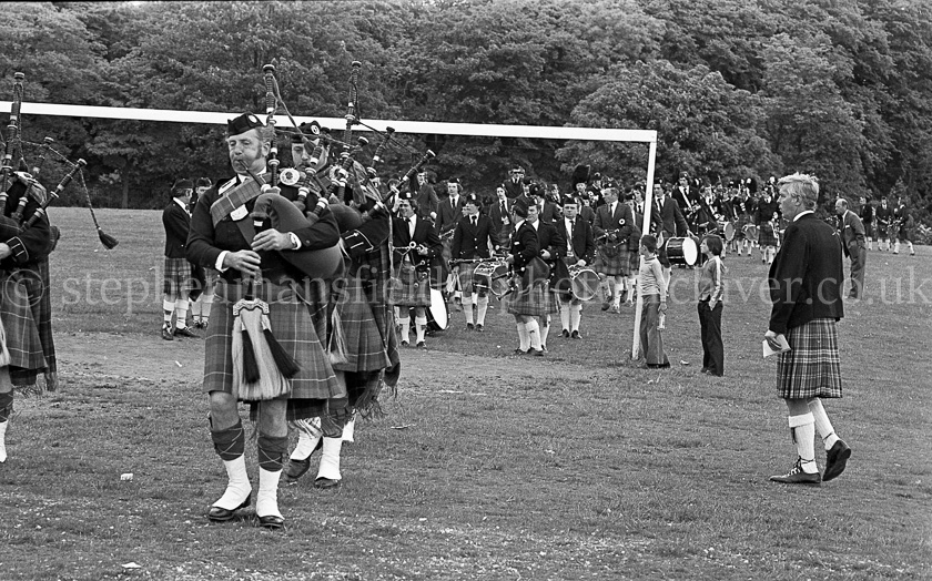 Barrhead in June 1977 was a busy month for the town with a full calendar of Gala events. Saturday the 4th was the Gala Day proper in the Cowan Park which was preceded by the now familiar parade of floats led by the Neilston Pipe Band and local majorettes. Picture by Stephen Mansfield.