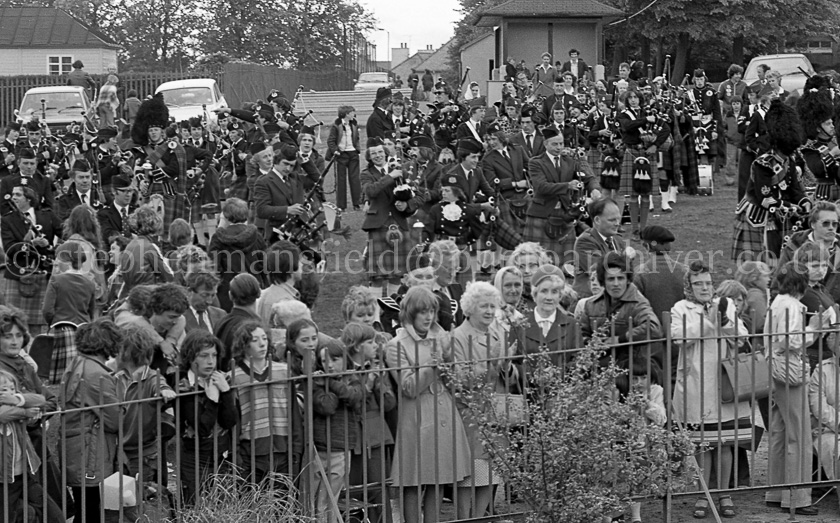 Barrhead in June 1977 was a busy month for the town with a full calendar of Gala events. Saturday the 4th was the Gala Day proper in the Cowan Park which was preceded by the now familiar parade of floats led by the Neilston Pipe Band and local majorettes. Picture by Stephen Mansfield.