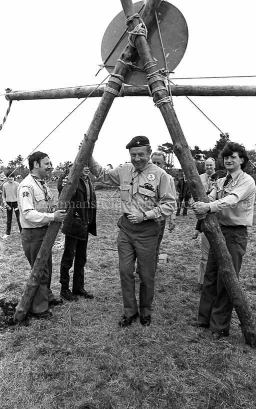 Cubs and Scouts gathered at their Peesweep Camp on the Gleniffer Braes above Paisley to meet the recently appointed Chief Scout, Major-General Michael J.H. Walsh who literaly made a flying visit to the facility. Picture by Stephen Mansfield.