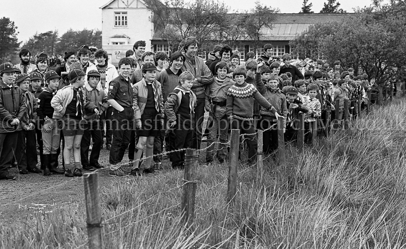 Cubs and Scouts gathered at their Peesweep Camp on the Gleniffer Braes above Paisley to meet the recently appointed Chief Scout, Major-General Michael J.H. Walsh who literaly made a flying visit to the facility. Picture by Stephen Mansfield.