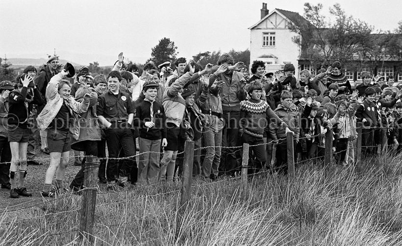 Cubs and Scouts gathered at their Peesweep Camp on the Gleniffer Braes above Paisley to meet the recently appointed Chief Scout, Major-General Michael J.H. Walsh who literaly made a flying visit to the facility. Picture by Stephen Mansfield.