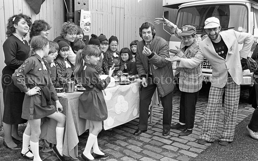 The Neilston Brownie units had the task of making a cup of tea in an unusual place or for a known personality. The 1st Neilston chose Barrhead Fire Station as their location while the 2nd Neilston targeted Radio Scotland presenter Jimmy Mack at the PS Waverly terminal. Picture by Stephen Mansfield.