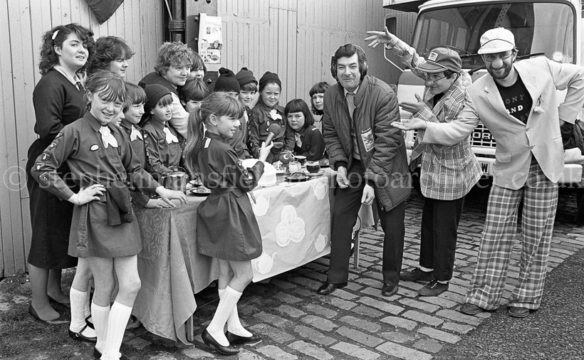 The Neilston Brownie units had the task of making a cup of tea in an unusual place or for a known personality. The 1st Neilston chose Barrhead Fire Station as their location while the 2nd Neilston targeted Radio Scotland presenter Jimmy Mack at the PS Waverly terminal. Picture by Stephen Mansfield.