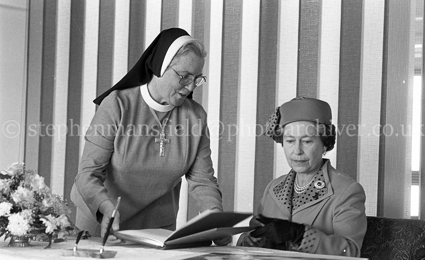 H.M. Queen Elizabeth II visited St. Margaret of Scotland Hospice, Clydebank on the 9th August 1986 where she met the patients and hard working staff and was cheered on by many onlookers. The pictures were taken by Stephen Mansfield for the Clydebank Post.