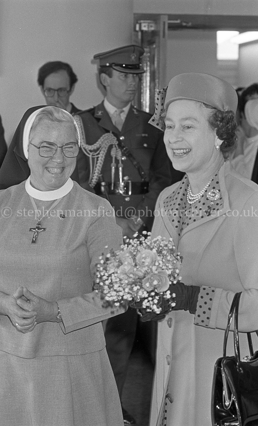 H.M. Queen Elizabeth II visited St. Margaret of Scotland Hospice, Clydebank on the 9th August 1986 where she met the patients and hard working staff and was cheered on by many onlookers. The pictures were taken by Stephen Mansfield for the Clydebank Post.