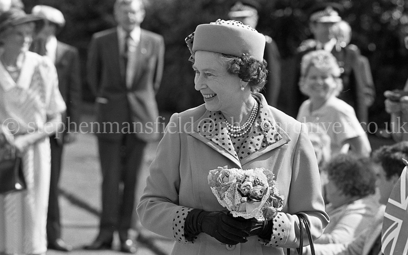 H.M. Queen Elizabeth II visited St. Margaret of Scotland Hospice, Clydebank on the 9th August 1986 where she met the patients and hard working staff and was cheered on by many onlookers. The pictures were taken by Stephen Mansfield for the Clydebank Post.