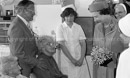 H.M. Queen Elizabeth II visited St. Margaret of Scotland Hospice, Clydebank on Saturday 9th August 1986 and accompanied by Provost David Grainger, she met the hard working staff and the patients while large crowds turned out to cheer her arrival. Pictures by Stephen Mansfield for the Clydebank Post.