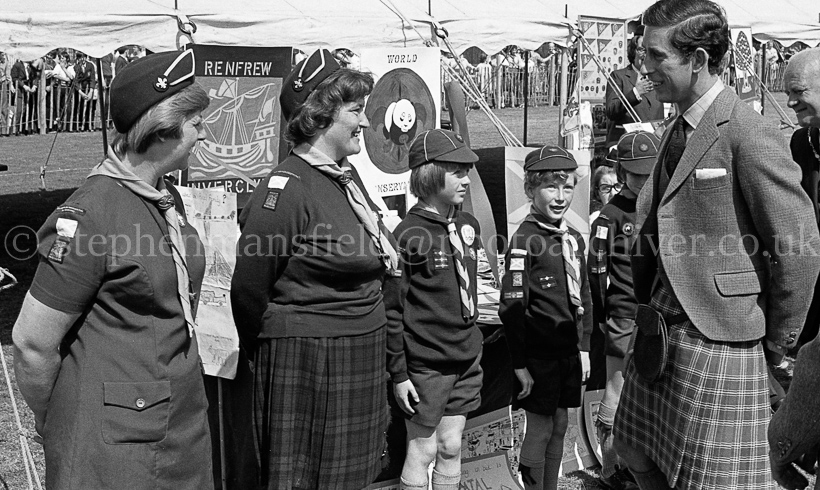 In his capacity as Baron of Renfrew HRH Charles, Prince of Wales visited the town's Robertson Park on a sunny day in June 1977. During his stay in the town, close to Paisley, he met various local organisation including the Red Cross, the Scouts and Guides and shook hands with many members of the large crowd. Picture by Stephen Mansfield.
