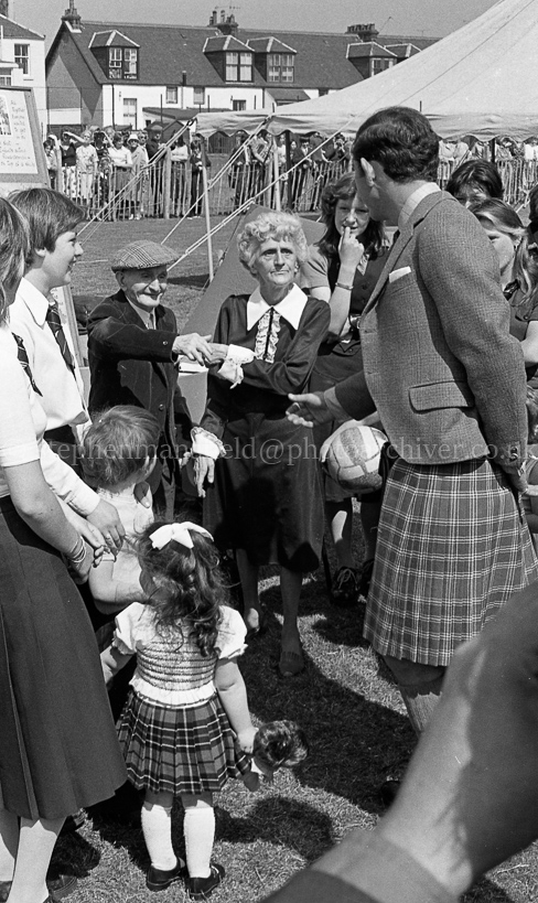 In his capacity as Baron of Renfrew HRH Charles, Prince of Wales visited the town's Robertson Park on a sunny day in June 1977. During his stay in the town, close to Paisley, he met various local organisation including the Red Cross, the Scouts and Guides and shook hands with many members of the large crowd. Picture by Stephen Mansfield.