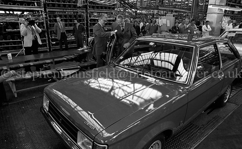 Scottish Secretary of State Bruce Millan visited the Rootes Chrysler Car Factory in Linwood in 1977 and viewed the latest model of the Sunbeam come off the assembly line. Picture by Stephen Mansfield.