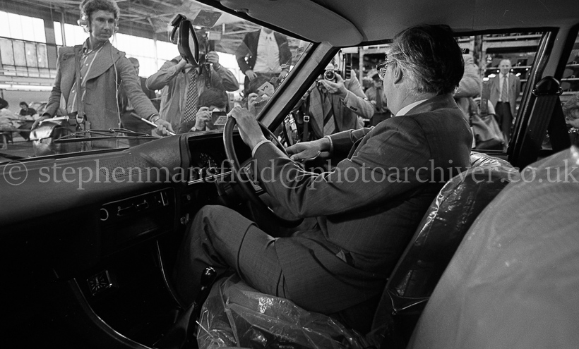 Scottish Secretary of State Bruce Millan visited the Rootes Chrysler Car Factory in Linwood in 1977 and viewed the latest model of the Sunbeam come off the assembly line. Picture by Stephen Mansfield.