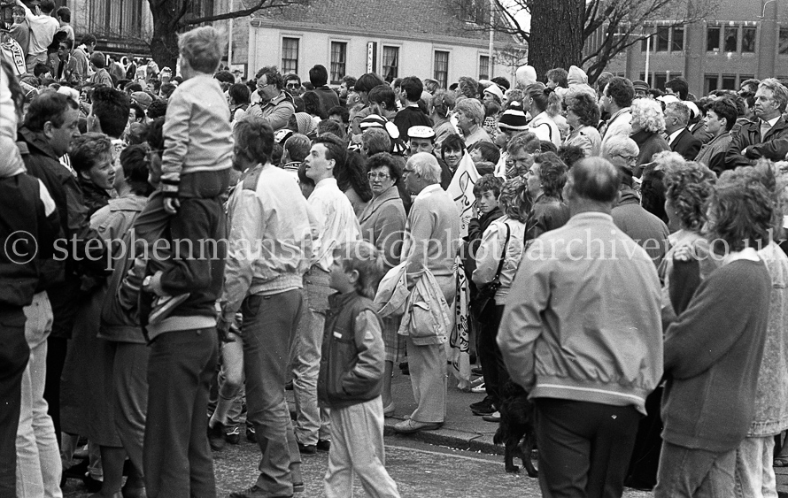The St. Mirren Football team arrive back in Paisley after winning the Scottish Cup in the 1-0 final with Dundee United at Hampden Park. Ian Ferguson was the scorer and was the third cup win in their then 110-year history. Pictures by Stephen Mansfield.