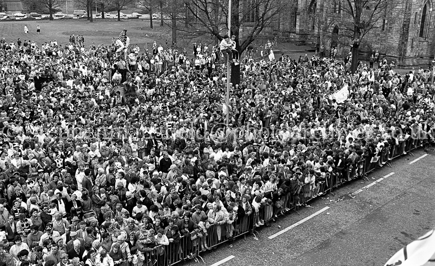 The St. Mirren Football team arrive back in Paisley after winning the Scottish Cup in the 1-0 final with Dundee United at Hampden Park. Ian Ferguson was the scorer and was the third cup win in their then 110-year history. Pictures by Stephen Mansfield.
