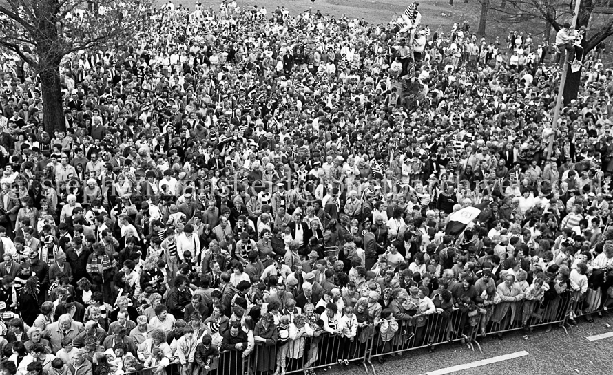 The St. Mirren Football team arrive back in Paisley after winning the Scottish Cup in the 1-0 final with Dundee United at Hampden Park. Ian Ferguson was the scorer and was the third cup win in their then 110-year history. Pictures by Stephen Mansfield.