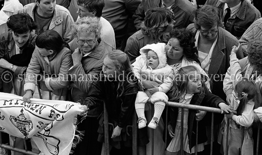 The St. Mirren Football team arrive back in Paisley after winning the Scottish Cup in the 1-0 final with Dundee United at Hampden Park. Ian Ferguson was the scorer and was the third cup win in their then 110-year history. Pictures by Stephen Mansfield.