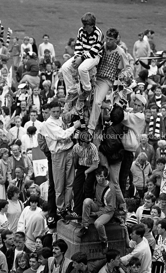 The St. Mirren Football team arrive back in Paisley after winning the Scottish Cup in the 1-0 final with Dundee United at Hampden Park. Ian Ferguson was the scorer and was the third cup win in their then 110-year history. Pictures by Stephen Mansfield.