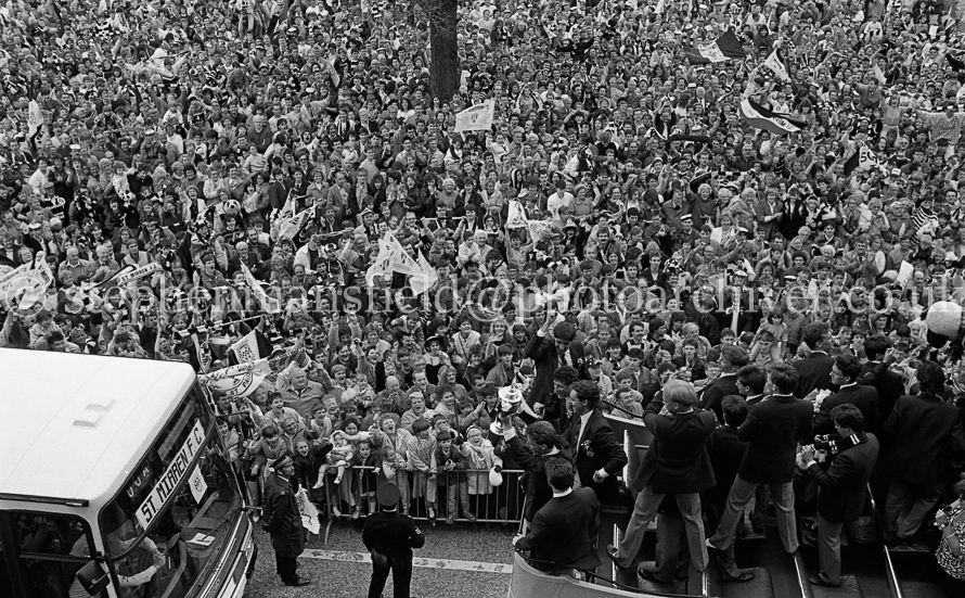 The St. Mirren Football team arrive back in Paisley after winning the Scottish Cup in the 1-0 final with Dundee United at Hampden Park. Ian Ferguson was the scorer and was the third cup win in their then 110-year history. Pictures by Stephen Mansfield.