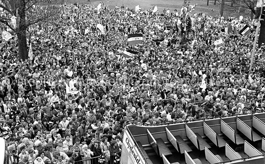 The St. Mirren Football team arrive back in Paisley after winning the Scottish Cup in the 1-0 final with Dundee United at Hampden Park. Ian Ferguson was the scorer and was the third cup win in their then 110-year history. Pictures by Stephen Mansfield.
